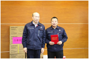 公司領(lǐng)導(dǎo)班子成員為獲獎員工頒發(fā)了榮譽證書。